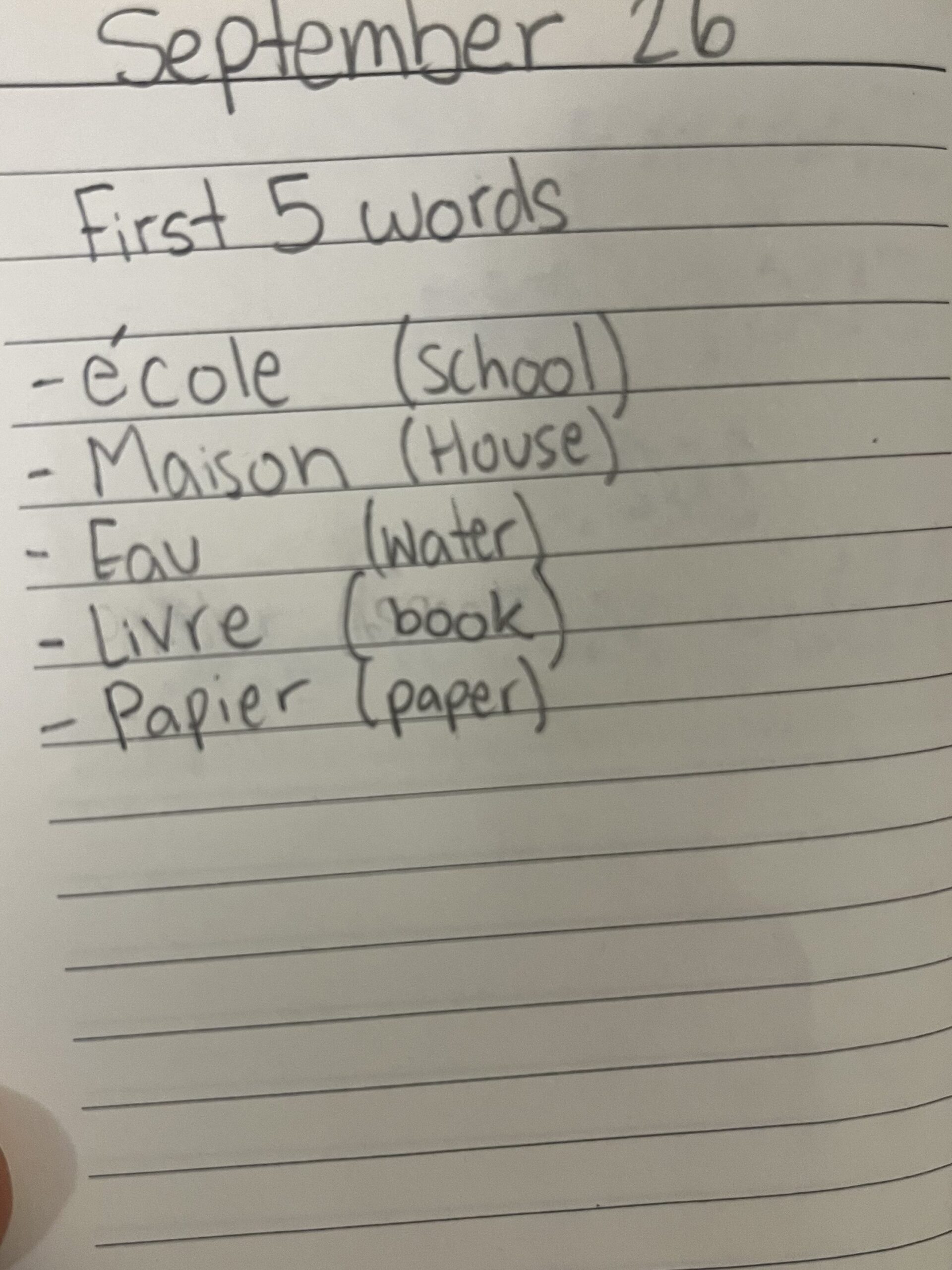 For my French Inquiry project I wanted to improve/ learn proper French pronunciation and this cite is a collection to document evidence of my exploration! This contains some of the many audio files I recorded , as well as photos of my journal entries I made.