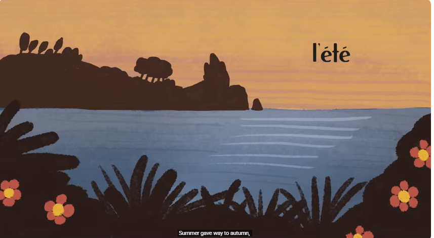 This story is nice and simple and I like how it highlights different French words such as the seasons!